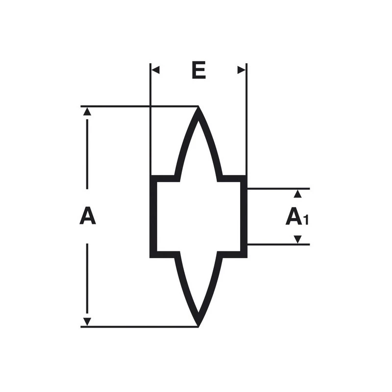 Dimensions : A x A1 x E (voir image) : 34 x 9,5 x 28 mm