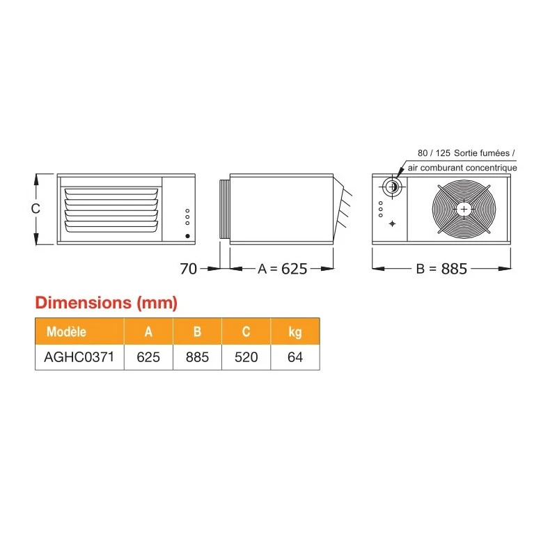 Axelair – Aérotherme gaz à fumisterie concentrique 36.7 kW débit d’air 3800 m3/h – ProGaz C