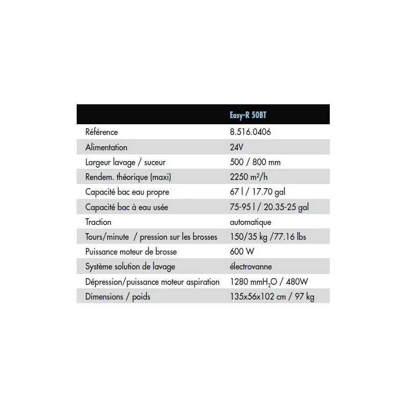 – Panneau de commande convivial: position marche avant, bouton de mise en marche brosse et aspiration séparés, indicateur charge de batterie, indicateur direction de traction, interrupteur principal à clé
