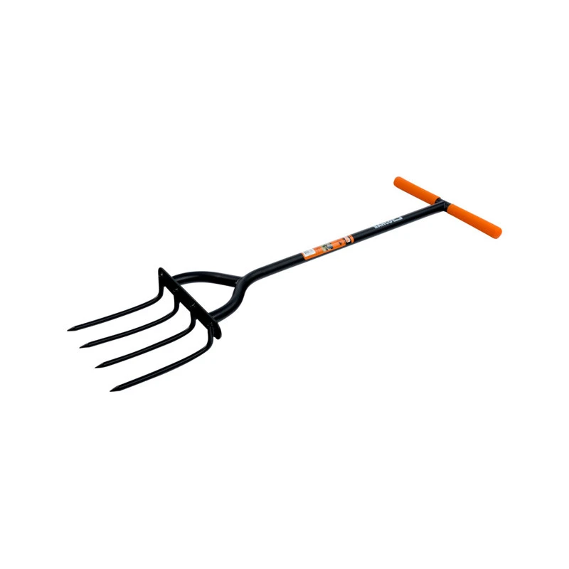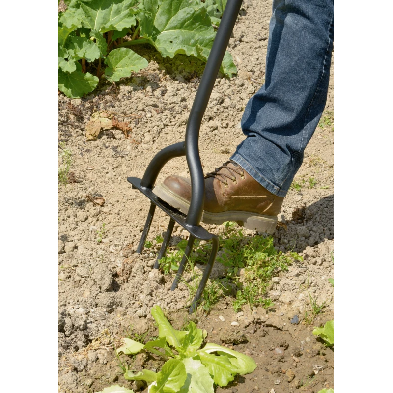 – Large fourche à 4 dents pour une pénétration en profondeur, idéale pour retourner, ameublir et aérer le sol