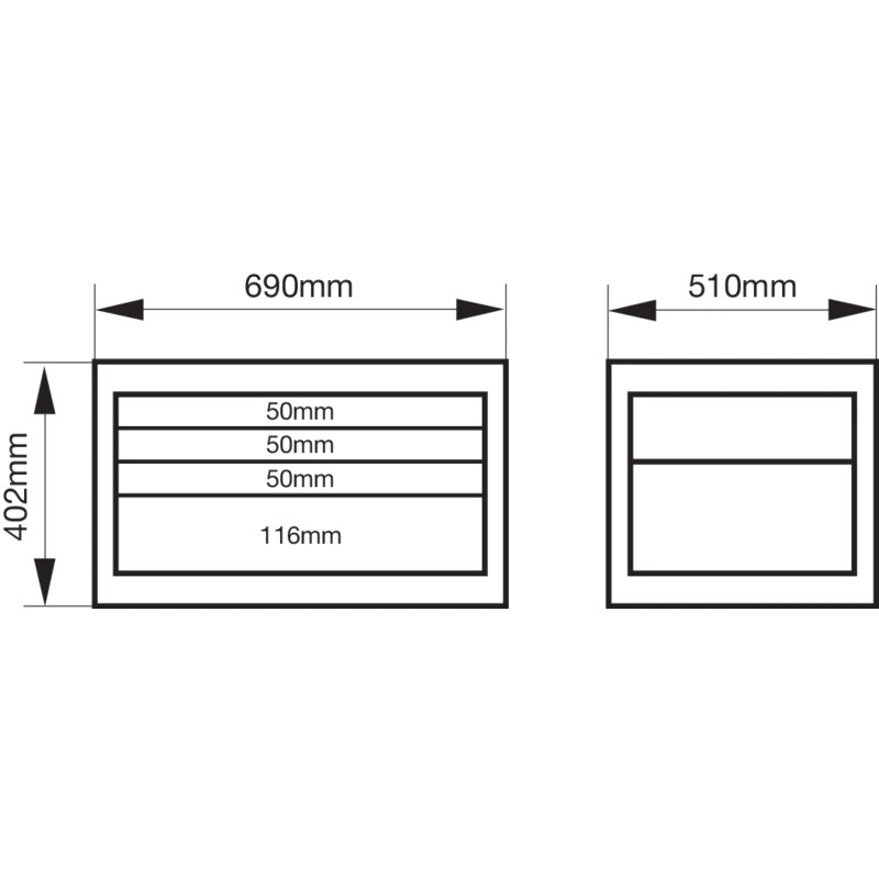 Dimensions du coffre : 690 x 510 x 402 mm