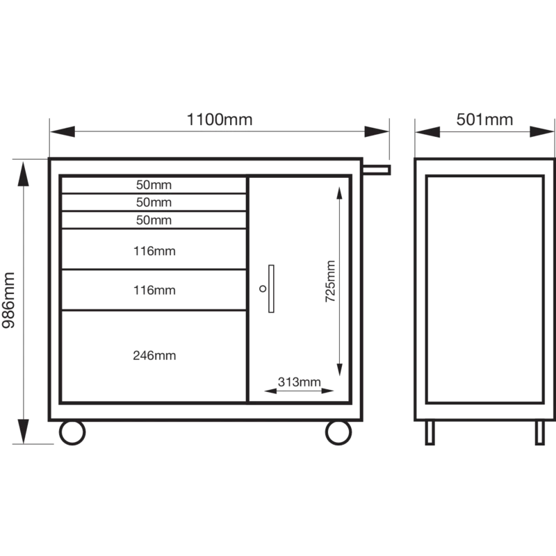 Dimensions de la servante : 986 x 501 x 1100 mm