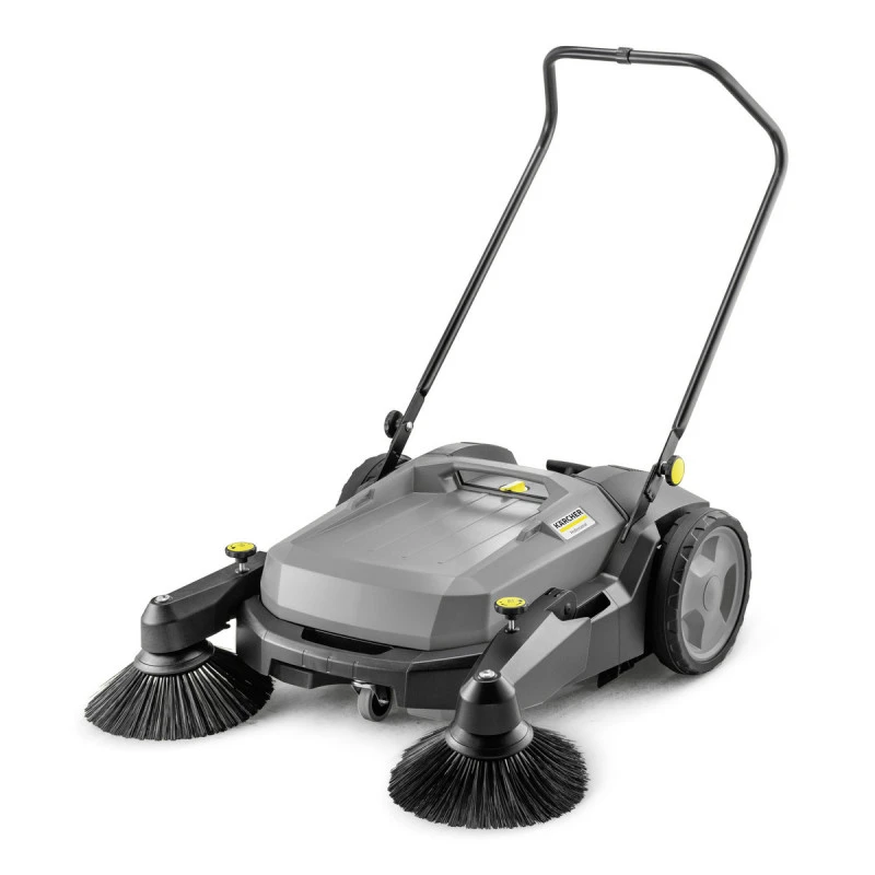 La balayeuse mécanique Karcher KM 70/20 C 2SB, avec une largeur de travail de 980 mm, se distingue par ses deux balais latéraux et son balai principal ajustable. Le nettoyage efficace des surfaces intérieures et extérieures est simplifié par l’entraînement manuel, assurant un rendement surfacique neuf fois supérieur à celui des balais traditionnels.