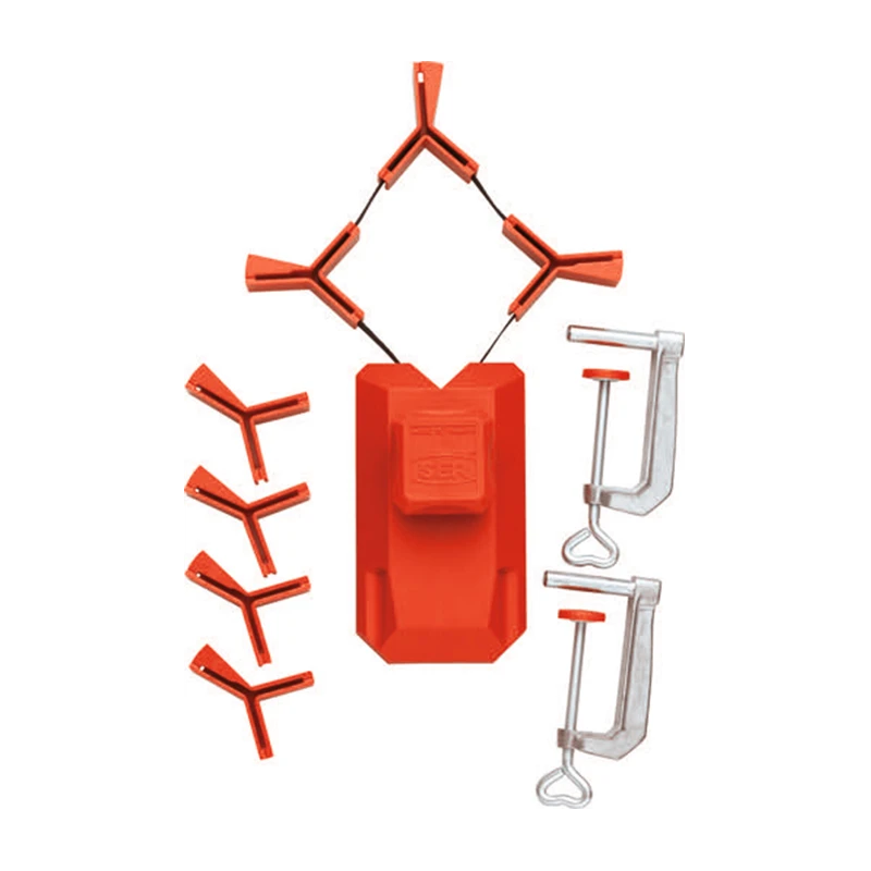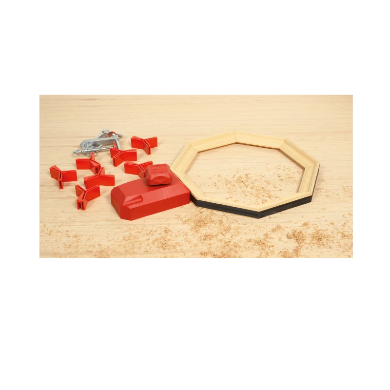 – Angle de serrage : 7 angles de positionnement. Chaque angle est à 3 profils, 90°, 120° et 135°, pour les pièces carrés et rectangulaires, hexagonales ou octogonales. La presse PR65 s’utilise également sans angles pour serrer toutes les formes.