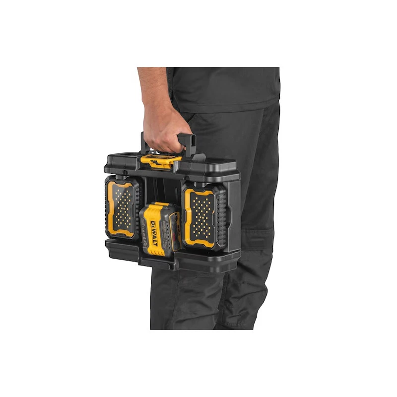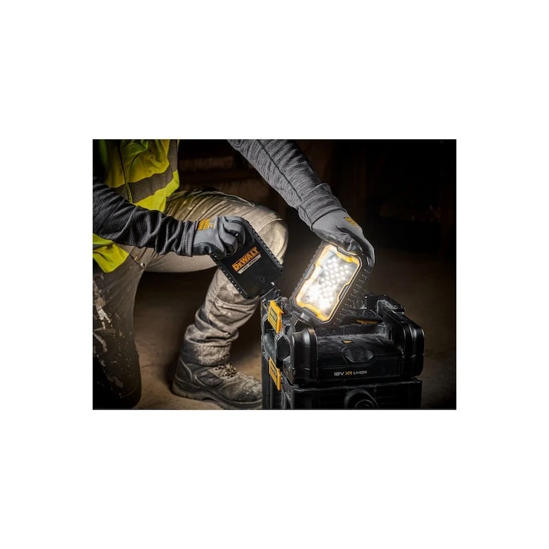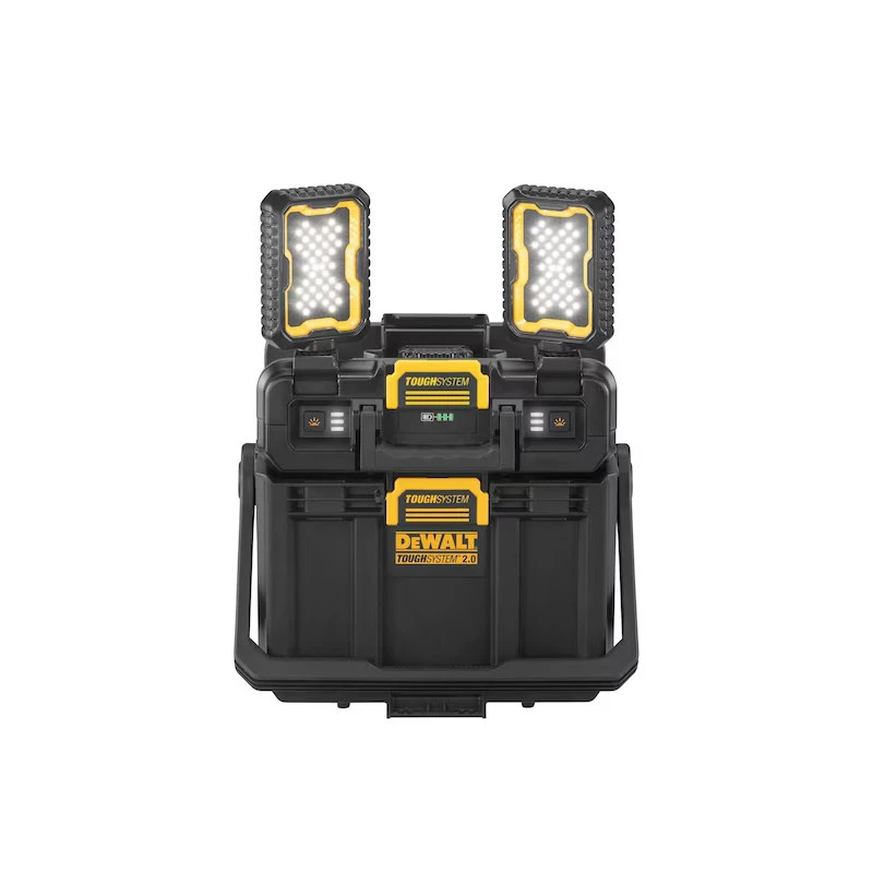 - Fonctionnalité 2 en 1 : Combine une lampe de chantier réglable avec deux panneaux LED rotatifs et une boîte à outils empilable Toughsystem 2.0.