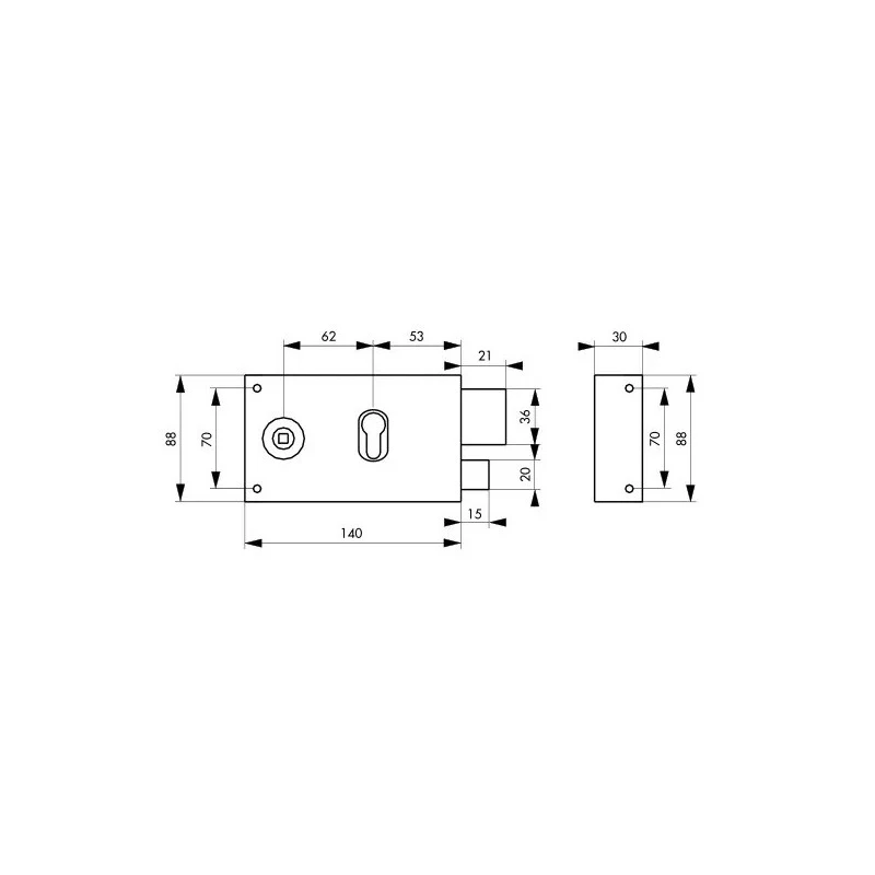 – Coffre et gâche acier cambré