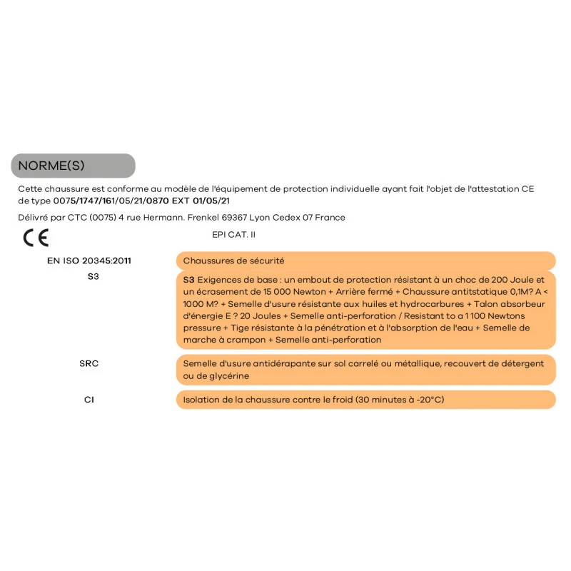 - Semelle anti-perforation : Textile