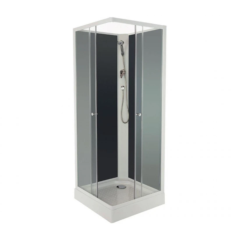 Ondée – Cabine de douche carrée 80 x 80 cm accès d’angle deux portes fond gris – MINÉA