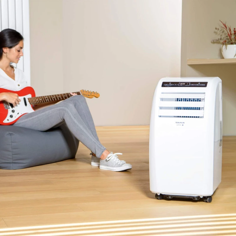 Petit climatiseur portatif de catégorie énergétique A+. Le plus compact, efficace et pratique pour vaincre la chaleur estivale et rafraîchir rapidement votre maison. Avec 3 modes de fonctionnement : froid, déshumidification et ventilation. Combinez ses fonctions selon vos besoins, programmez grâce à sa minuterie 24 heures et contrôlez-le facilement avec son panneau de commande tactile ou sa télécommande.