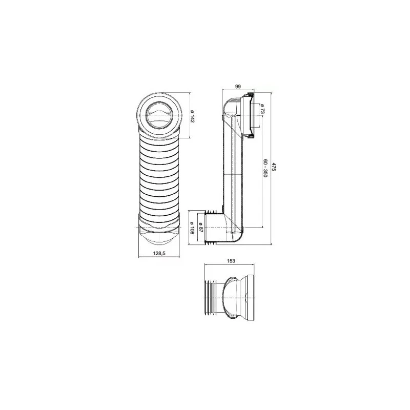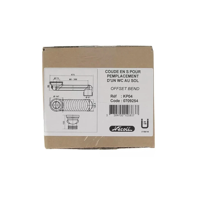 Coude en S Nicoll 709254 KP04 D87mm L475mm pour remplacement wc au sol
