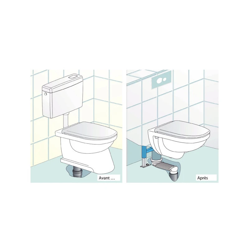 Permet de remplacer un WC au sol traditionnel avec sortie verticale par un WC suspendue avec bâti-support.