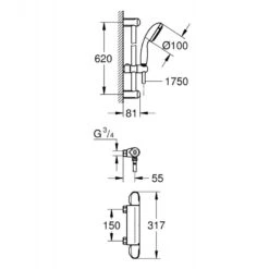 Grohe Mitigeur Douche Grohtherm 1000 1/2″ Avec Ensemble De Douche Chromé