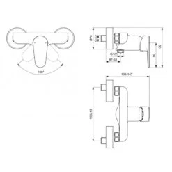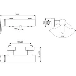 Ideal Standard Mitigeur Douche Mural CONNECT Manette à Gauche Chromé B9924AA