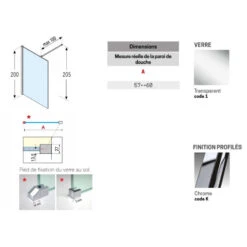Paroi Douche L’italienne 57-60xH200 CmVerre Transparent Profilé Chrome
