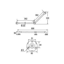 Barre De Maintien En L Diam 32, H. 1150 Mm à Gauche Inox Poli Satiné