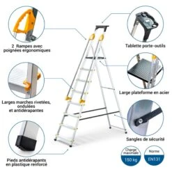 Escabeau 6 Marches DURAMP Aluminium Léger, Sécurisé Avec Rampes Et Porte-outils 119cm Hoström