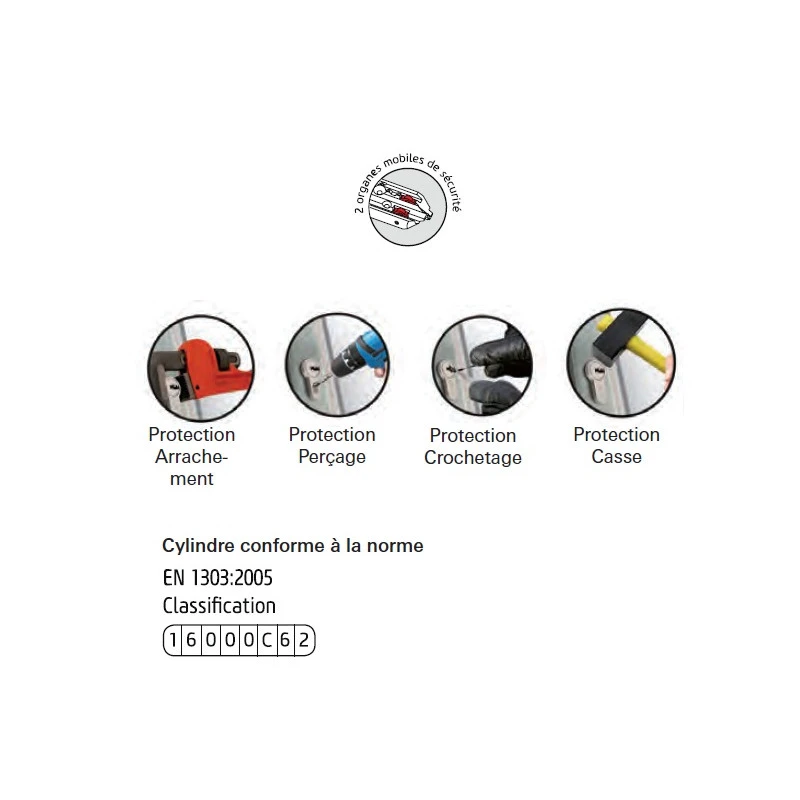 – Protection contre le perçage par aiguille, et 1ère goupille + poussoir en acier trempé
