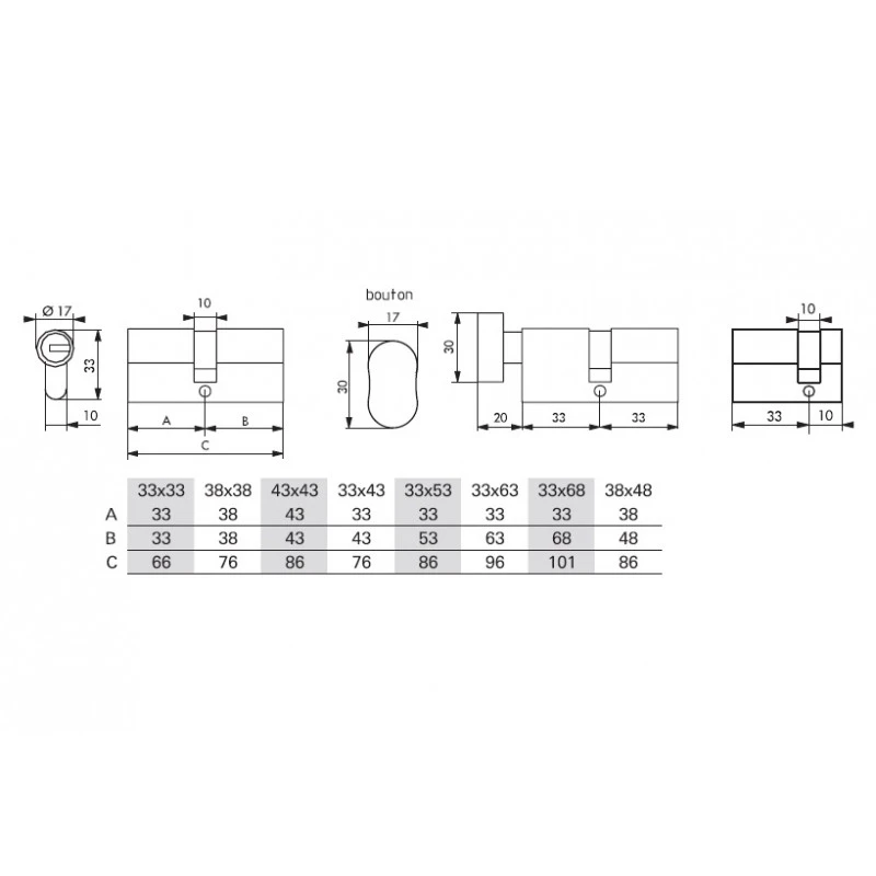 Thirard – Cylindre ATLANTIC M 33 x 63 mm avec 4 clés