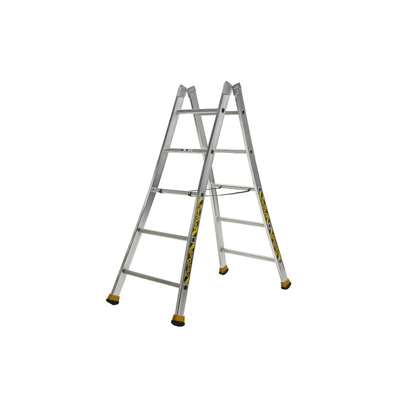 Echelle double aluminium 2 plans évasés, garante d’une excellente stabilité.