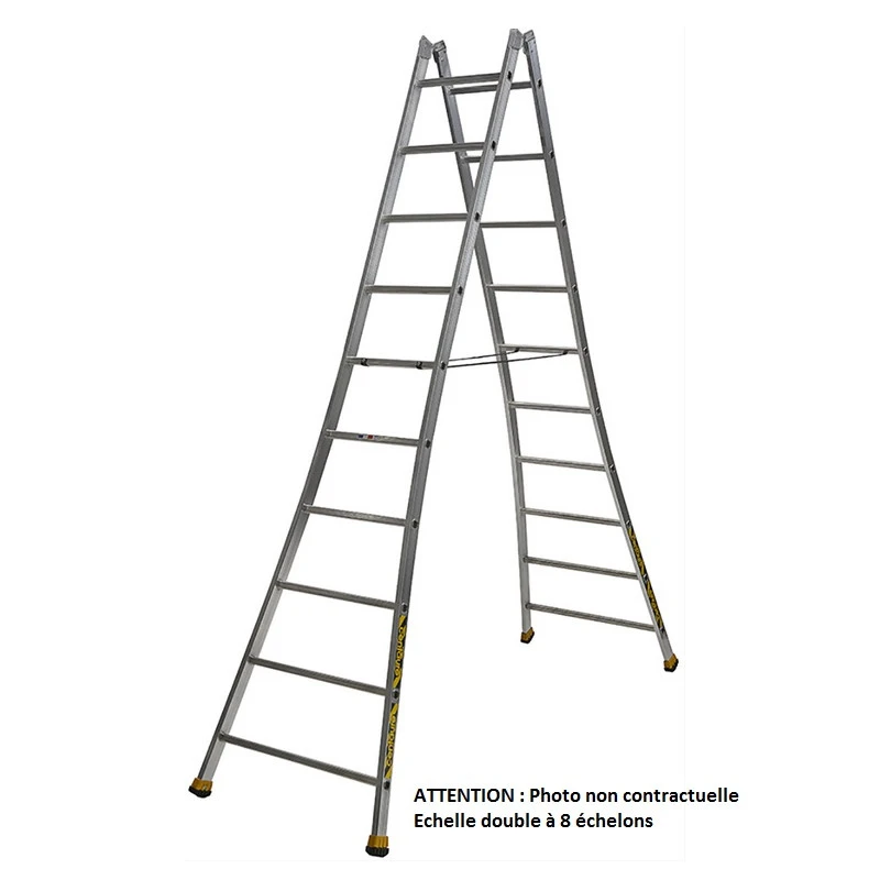Echelle double aluminium 2 plans évasés, garante d’une excellente stabilité.