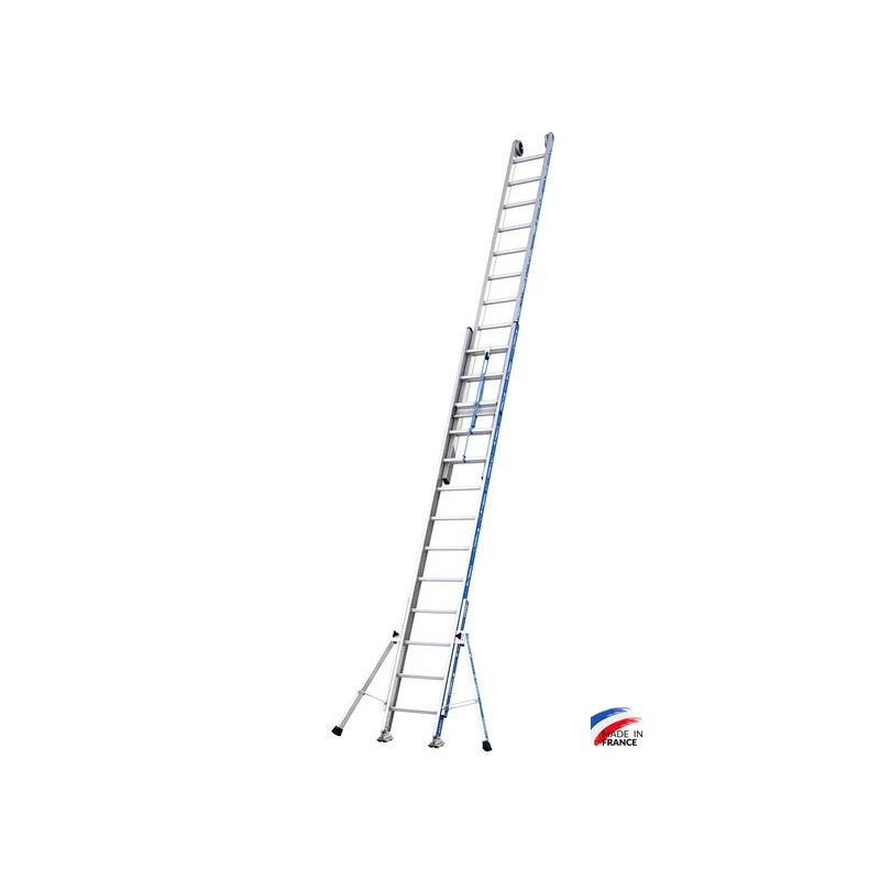 L’échelle en aluminium Platinium 500 se compose de 2 plans et d’un système de coulisse à corde permettant d’accéder jusqu’à 13,13m. Ses stabilisateurs latéraux réglables, ses sabots orientables, ses montants renforcés et ses échelons orientés en font l’échelle la plus qualitative du marché. Elle répond aux normes EN 131, au décret 96333. Elle est labellisée NF.