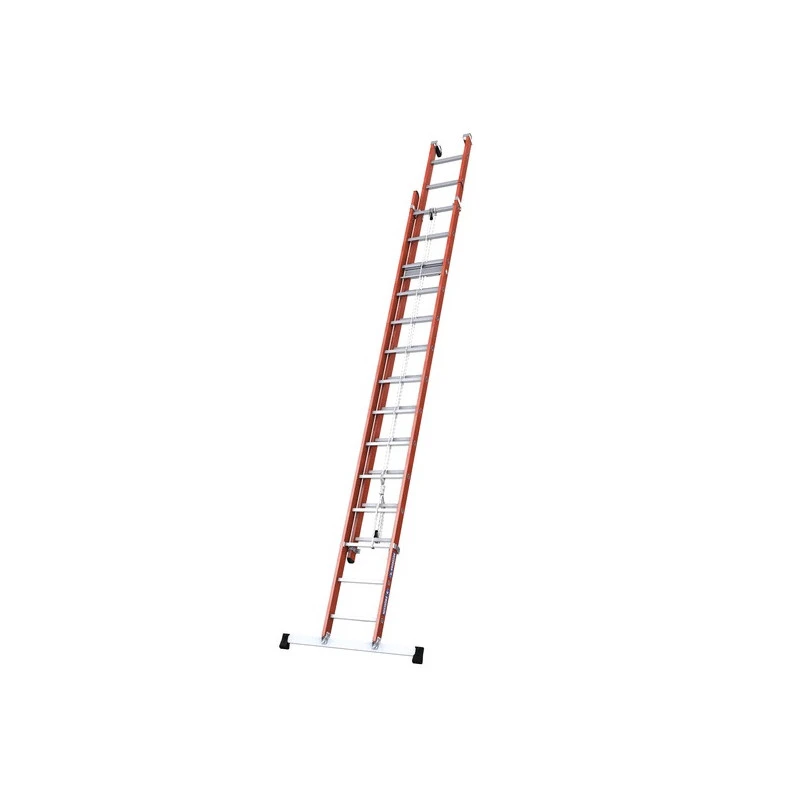L’échelle coulisse 2 plans à corde, en mixte aluminium / fibre de verre permet d’accéder à 10,10m. Son embase stabilisatrice avec ses sabots renforcés, son basculeur automatique et ses roues de déploiement garantissent sécurité et facilité d’utilisation. Elle répond aux normes EN 131, EN 50528, au décret 96333 et est labelisée NF.