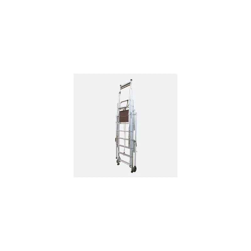 Cette échelle d’appui tout alu télescopique répond aux normes NE E 85211 et décret 2004-924 et permet une intervention sur tout type de poteaux jusqu’à 4m95. Son garde-corps, ses plinthes intégrées et ses stabilisateurs assurent une grande sécurité. Sa manipulation est facilitée par deux roues de déplacement.