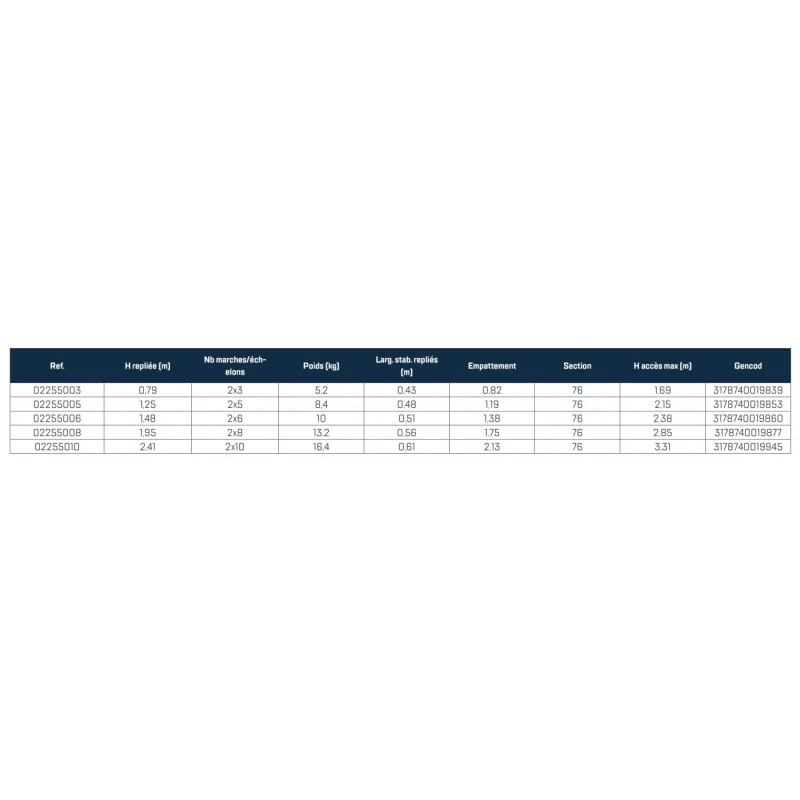 Nb marches/échelons : 2×10