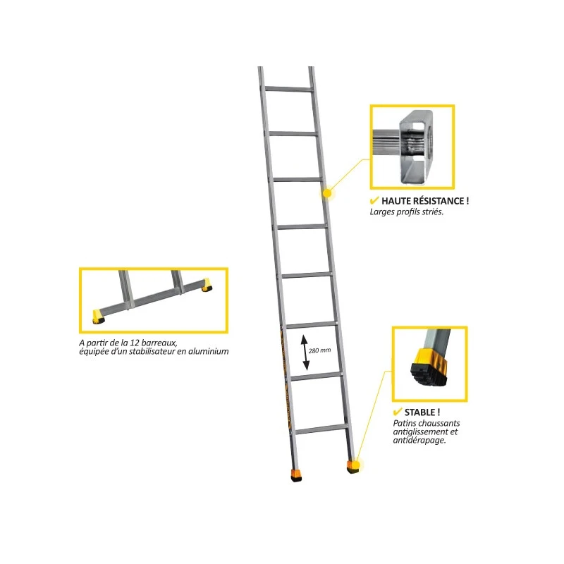 Les avantages de cette Echelle en aluminium simple 14 barreaux Centaure S sont :
