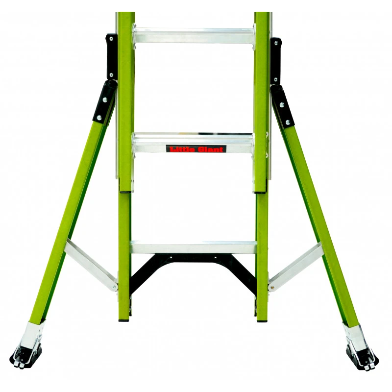 • Les montants isolés sont de couleur verte à haute visibilité, qui est scientifiquement reconnue comme la couleur la plus visible par l’oeil humain. Cette teinte développée en exclusivité par Little Giant à pour but d’augmenter la visibilité de l’échelle lorsque celle-ci est déployée et ainsi d’éviter de percuter l’échelle en pleine utilisation.