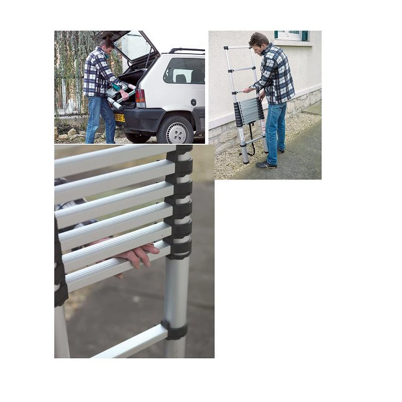 Ribitech – Echelle télescopique 13 barreaux avec stabilisatrice Haut. 93/390 cm – PRET133