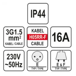 Silverline Enrouleur-dévidoir 230V Prises Schuko Européenne 4 Prises 16 A 25 M (C