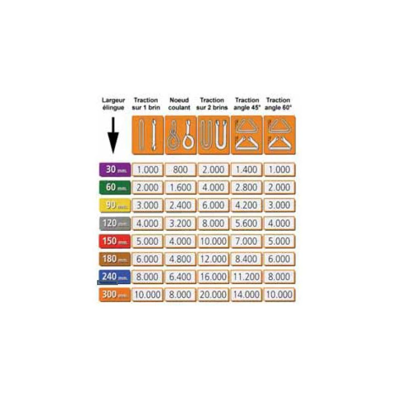 Repérage de la charge maximum par la couleur. Conformes à la norme EN 1492-1