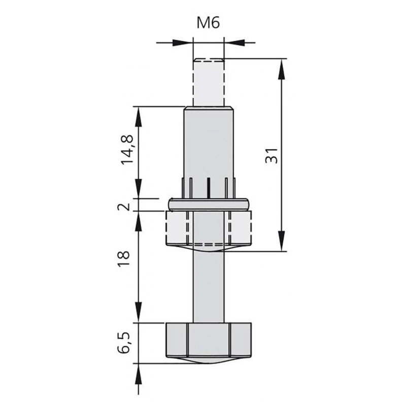 Vérin avec écrou à réglage externe pour tous types de meubles. Il dispose d’une vis M6, avec un écrou de réglage et un cache hexagonale en plastique blanc.