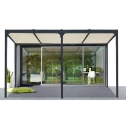 Pergola Habrita PER 3660R BI Alu XXL 21,52m2 Gris 2 Rideaux Côté 5,98m