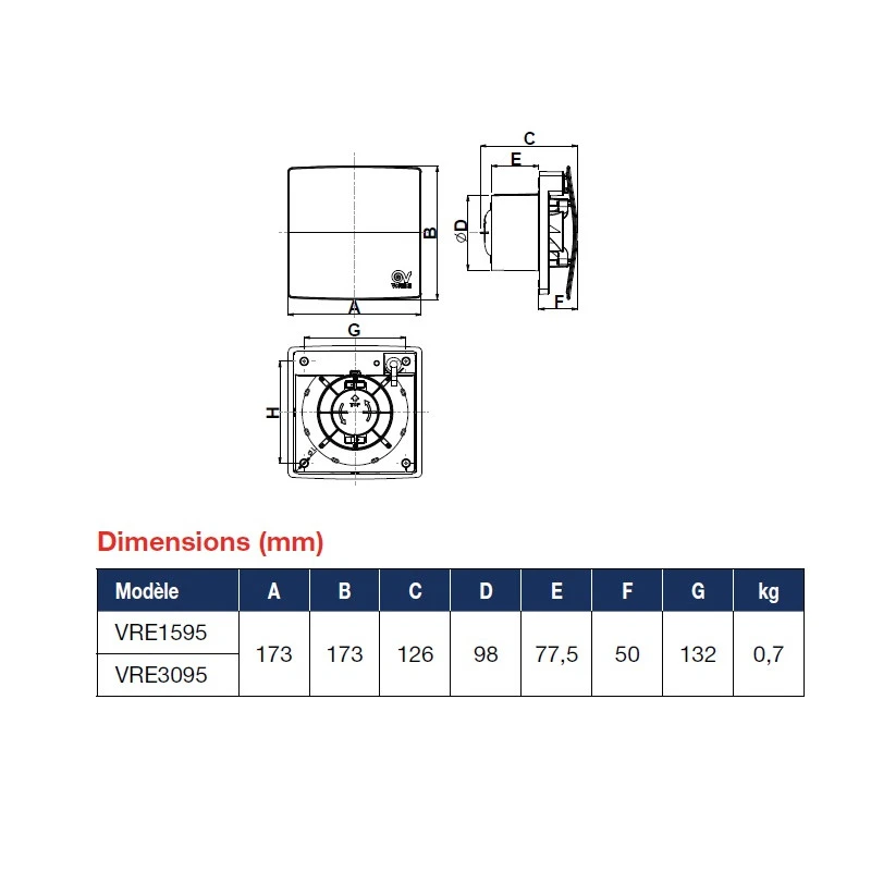 Caractéristiques techniques de l’extracteur Vortice Evo HABITAT :