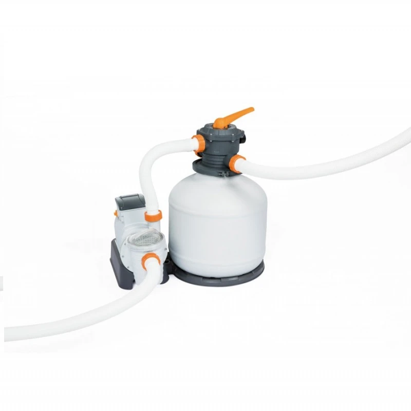 Les pompes de filtration à sable Flow™ sont la solution idéale pour les piscines hors sol. Plus efficace que les pompes de filtration à cartouche, une pompe de filtration à sable correctement utilisée demande peu d’entretien avec un chargement de sable qui durera au moins une saison complète. Compatibles avec la plupart des piscines hors sol disponibles sur le marché, nos pompes de filtration à sable sont équipées d’un préfiltre intégré (collecte des débris les plus gros) et d’une sécurité anti-obstruction. Recommandez les filtrations à sable Bestway en toute confiance.