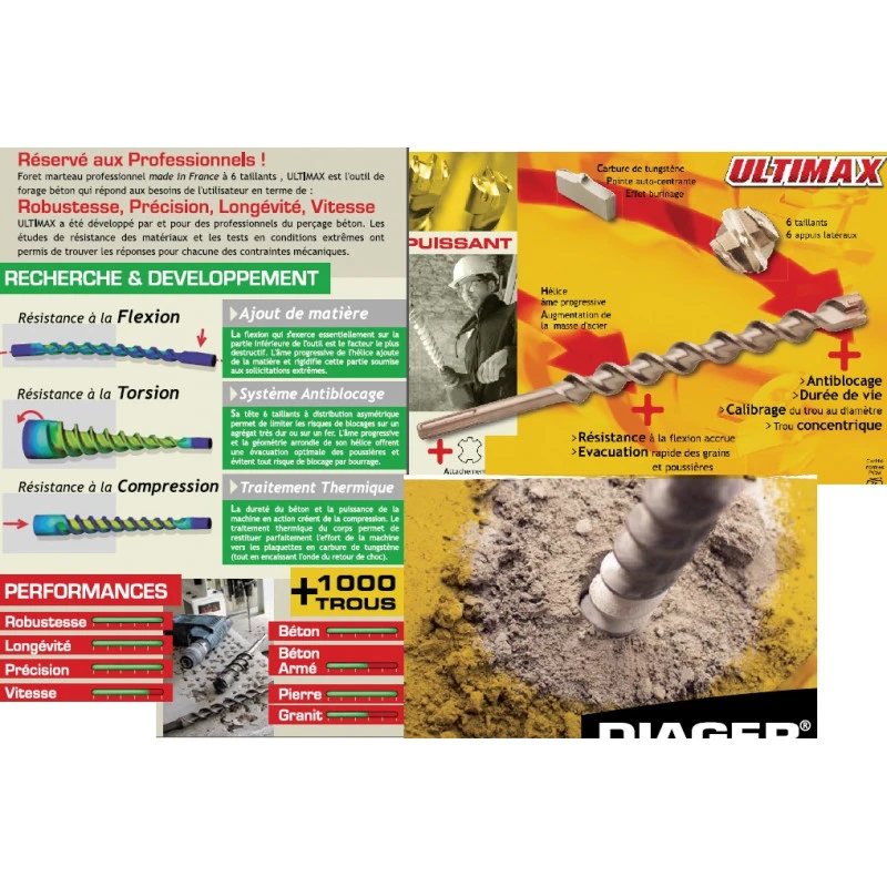 Diager – Foret Sds Max Ultimat 6 taillants (matériaux durs) Ø26x L540 – 166D26L0540
