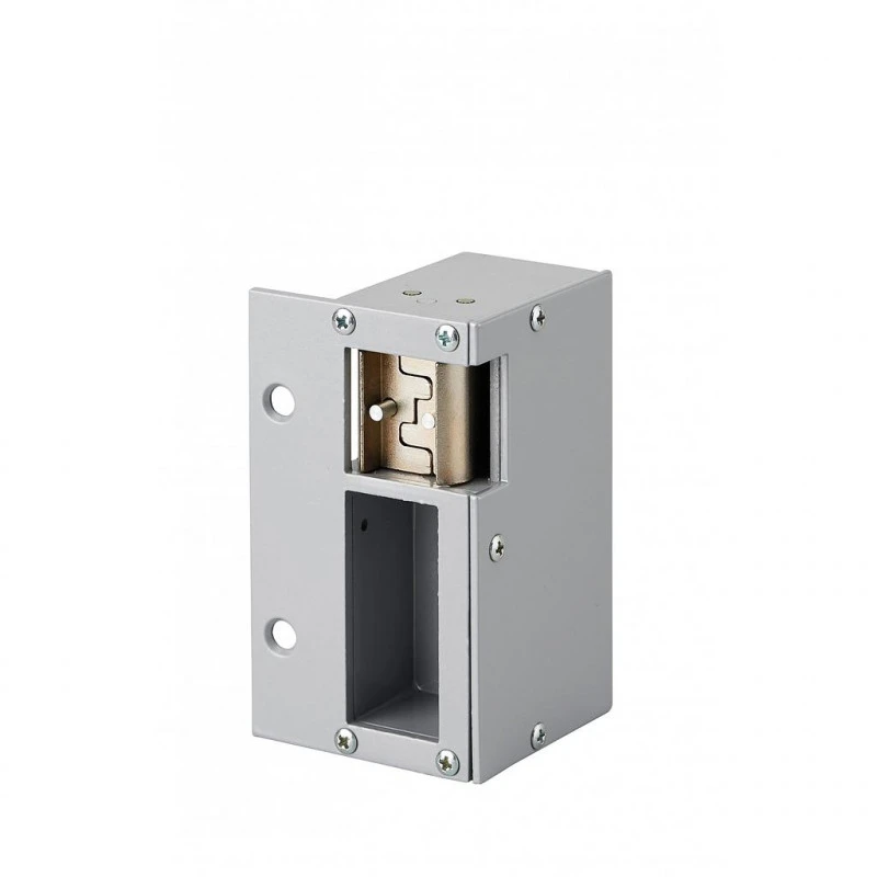 – Courant d’alimentation : continu 12 V ou alternatif à contact stationnaire (une seule impulsion électrique libère la gâche, qui reste déverouillée jusqu’à ce que la porte soit manœuvrée. C’est l’ouverture de la porte qui re-verouille la gâche en annulant l’effet du contact stationnaire).