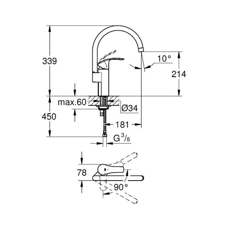 Grohe – Mitigeur évier bec haut 339mm Eurosmart