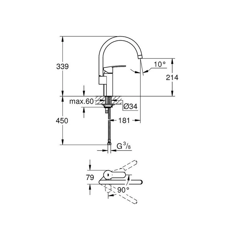 Grohe – Mitigeur évier bec haut eurostyle – 30220002