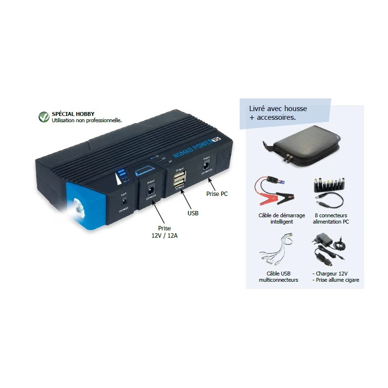 Il démarre les véhicules équipés de batterie 12V déchargée (liquide, gel, AGM, Start&Stop) en quelques secondes.