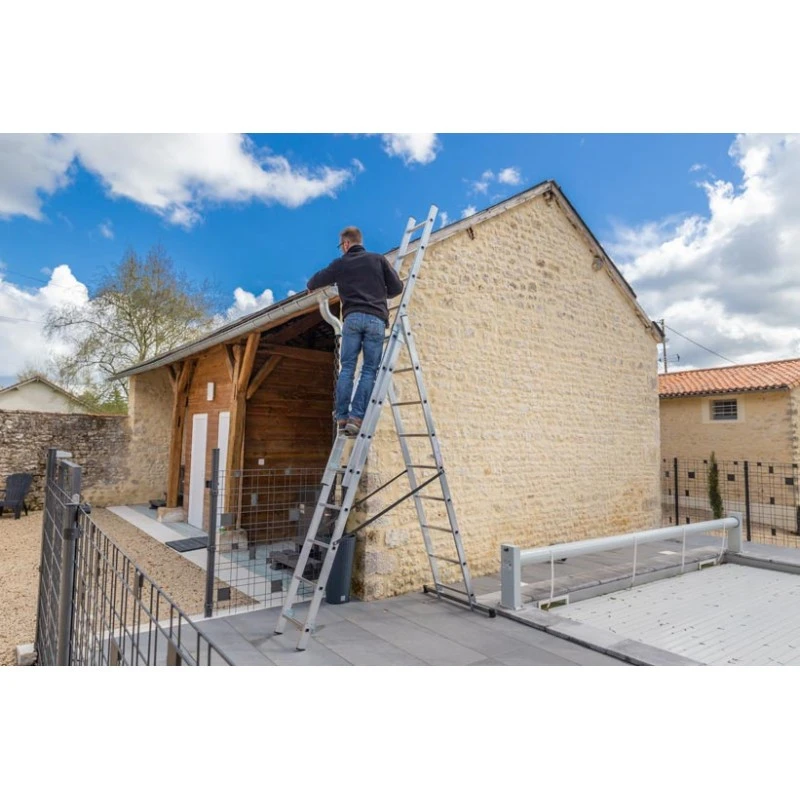 – Utilisable en échelle double, coulissante ou simple avec crochet et sangles de sécurité