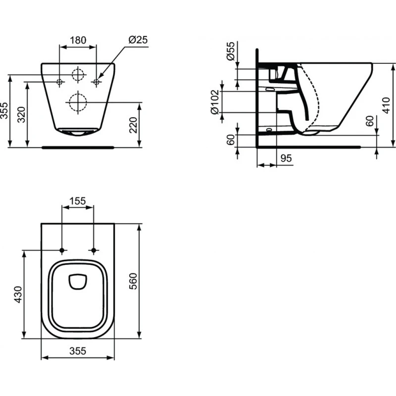 Ideal Standard – Cuvette suspendue AquaBlade® 56 x 35,5 cm blanc ideal plus – Tonic II