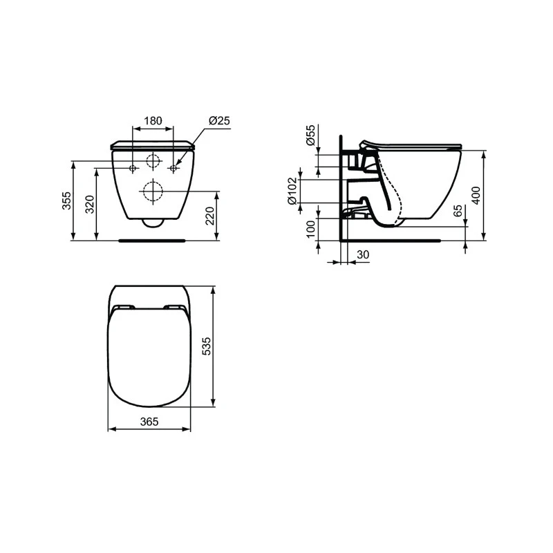 Ideal Standard – Cuvette suspendue avec abattant frein de chute blanc – TESI