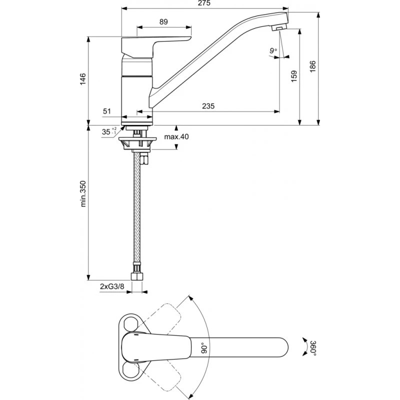 Hauteur sous aérateur 159 mm. Hauteur totale 186 mm.