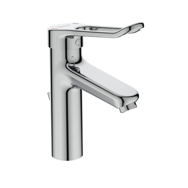 Ideal Standard – Mitigeur lavabo sur table chromé EP Grande avec tirette et vidage poignée ajourée – Okyris Safe