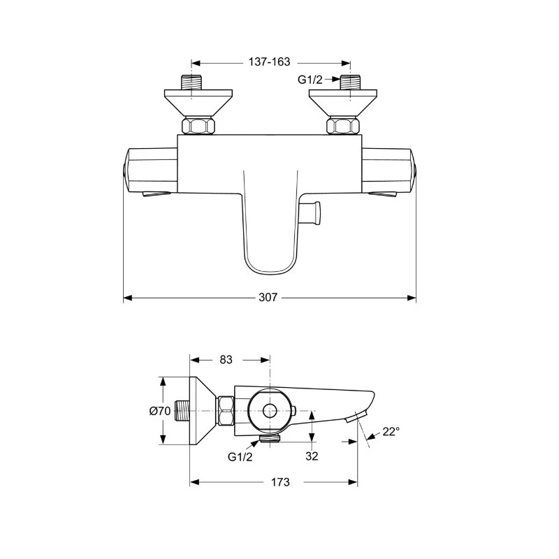 Ideal Standard – Mitigeur thermostatique bain-douche mural chromé eau chaude et froide