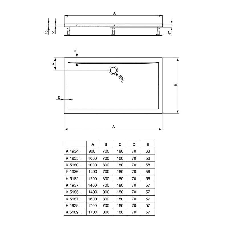 Ideal Standard – Receveur de douche extra-plat 4cm en acrylique 90x70cm – ULTRA FLAT
