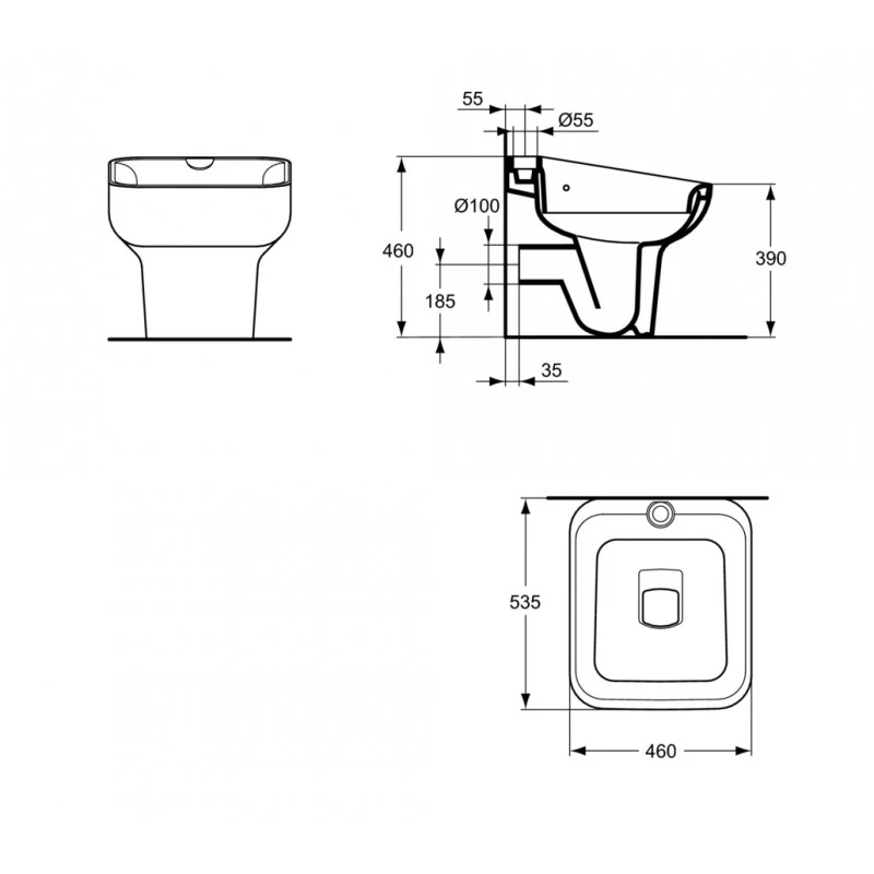 Ideal Standard – Vidoir sur pied sortie horizontale 53,5 x 46 cm blanc – Brenta